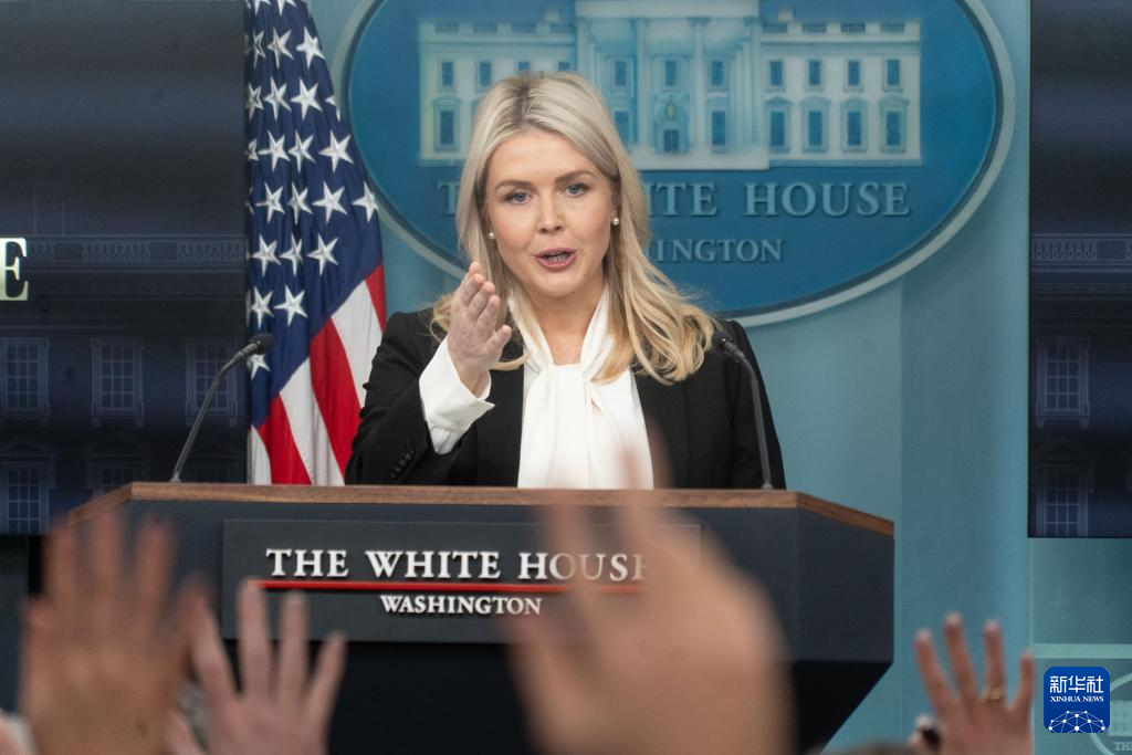3月4日,在美國首都華盛頓,白宮新聞秘書萊維特出席記者會(huì)。新華社發(fā)(李源清 攝)